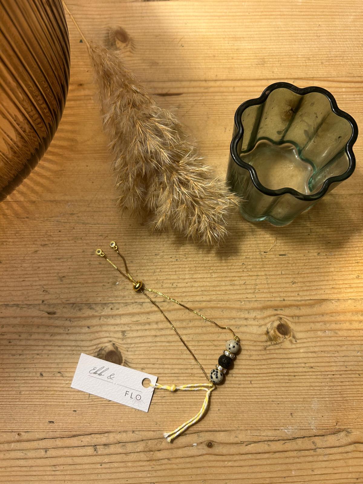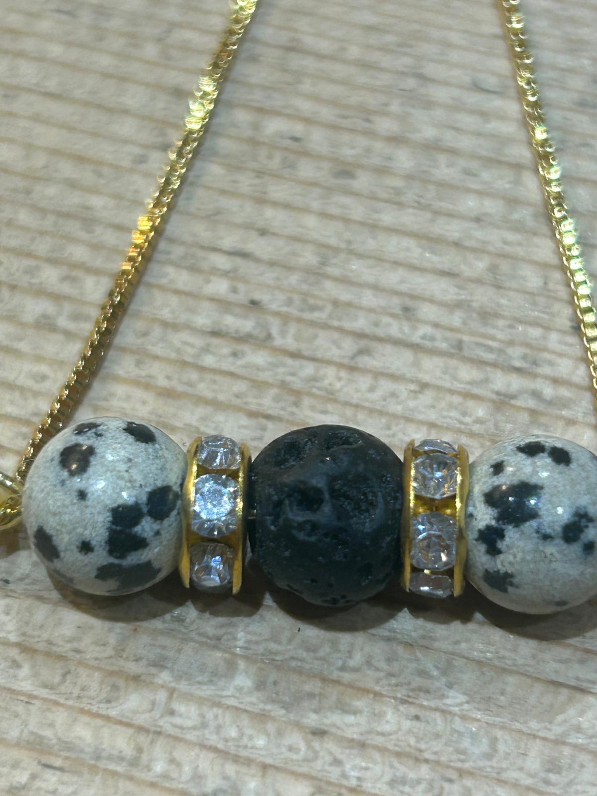 Gold Bracelet – Dalmatian Jasper & Black Lava Stone